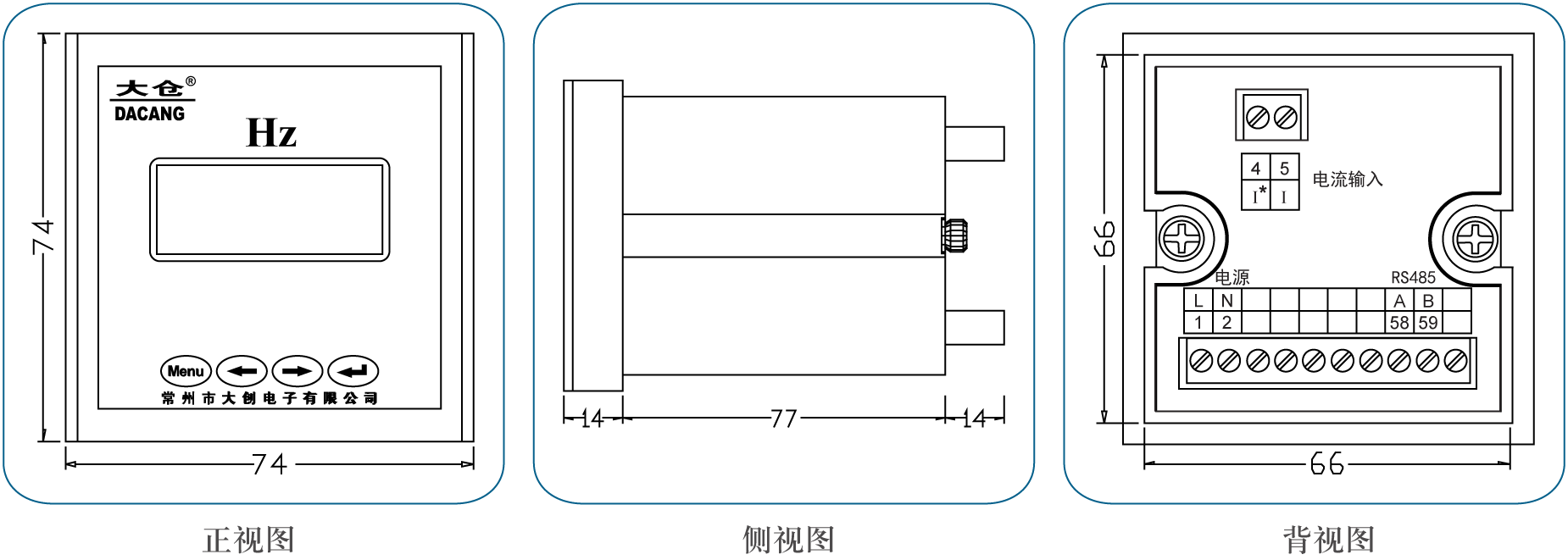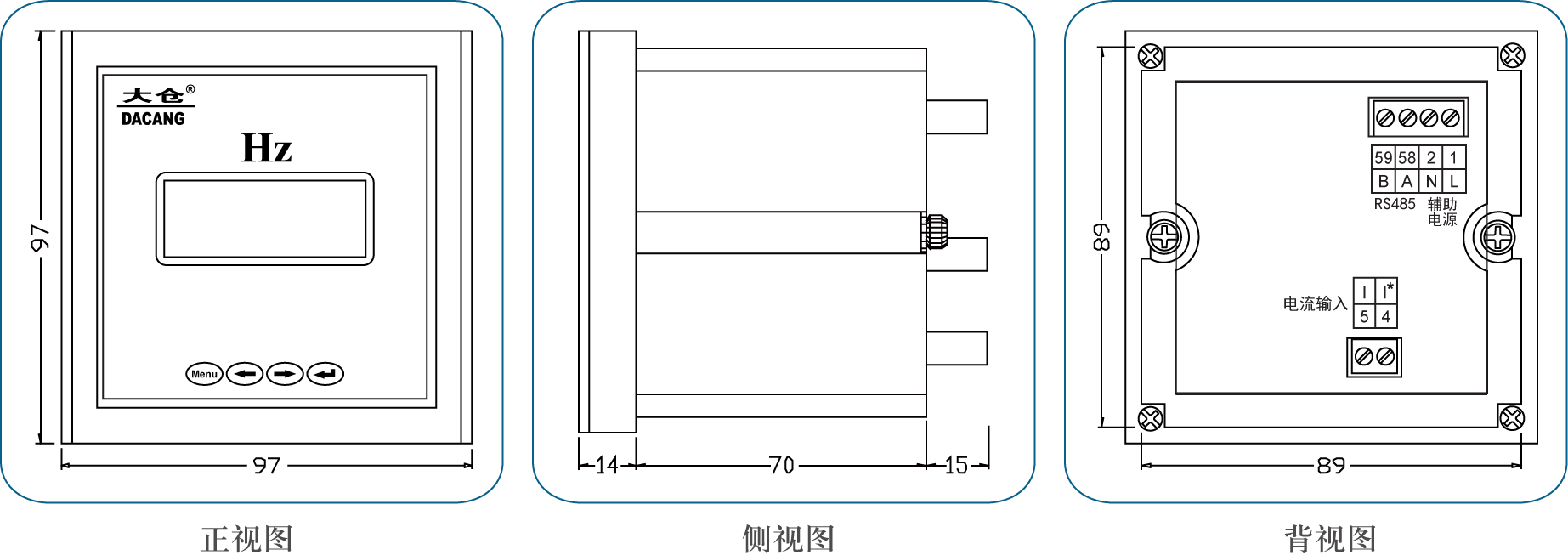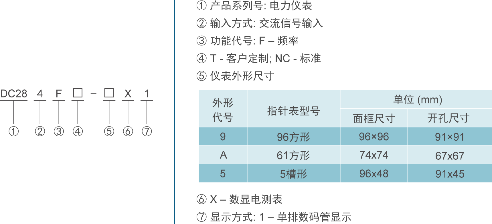 可编程智能数字频率表主要用于配电系统的连续监视、测量电网中的频率参数。 开关量输入用于监视开关状态,继电器输出用于报警或分合闸控制,模拟量输出用于DCS系统或工业监控设备,RS485通讯口(Modbus-RTU通讯协议)用于数据的输出。 ◇ X系列(普通数显电测型) ◇ D系列(数显变送型)选配模拟量输出 ◇ K系列(可编程设置型)可选配RS485通讯 ◇ S系列(报警测控型)选配开关量输入、继电器输出 可编程智能数字频率表可全面替代常规单相、三相指针表,可用于智能配电系统或企业过程自动化系统的数据采集单元,特别是在对电力品质、电力安全有要求的场合以及就地显示的场合。 主要应用领域有: ◇ 高、低压配电系统 ◇ 智能开关柜 ◇ 工厂自动化系统 ◇ 工业机器设备 ◇ 智能型箱变及楼宇 ◇ 商业、工业和电力系统 2. 产品图片
