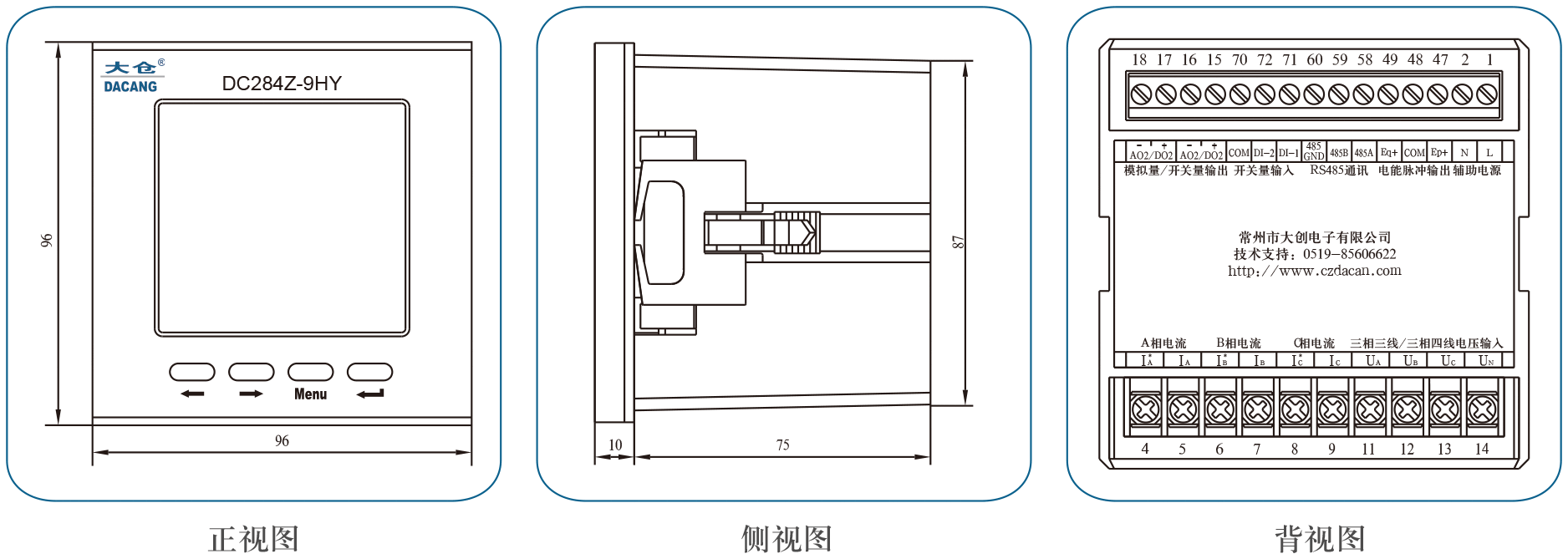 DC284E/Z系列多功能网络电力仪表是针对电力系统、工矿企业、公共设施、智能大厦等的电力智能监控和电能计量等需求而设计,能够高精度测量三相电网中的所有常用电力参数,三相电压/电流、有功/无功/视在功率、功率因数、频率、四象限电能、复费率电能、需量、开关量输入监测、开关量输出控制、模拟量输出、并带有通讯接口、电能脉冲输出等功能。 DC284E/Z系列多功能网络电力仪表具有极高的性能价格比,可以直接取代常规电力变送器、测量指示仪表、电能计量仪表以及相关的辅助单元。 该系列仪表按功能可分为三类: ◇ H型(谐波测量分析型) ◇ Z型(综合型、增强型) ◇ E型(基本型) DC284E/Z系列产品可作为一种先进的智能化、数字化的电网前端采集元件,已广泛应用于各种控制系统中,具有安装方便、接线简单、维护方便,工程量小、现场可编程设置输入参数、能够与业界不同PLC、工业控制计算机组网通讯。 主要应用领域有: ◇ 高、低压配电系统 ◇ 智能开关柜 ◇ 工厂自动化系统 ◇ 工业机器设备 ◇ 能源管理系统 ◇ 智能建筑 2. 产品图片