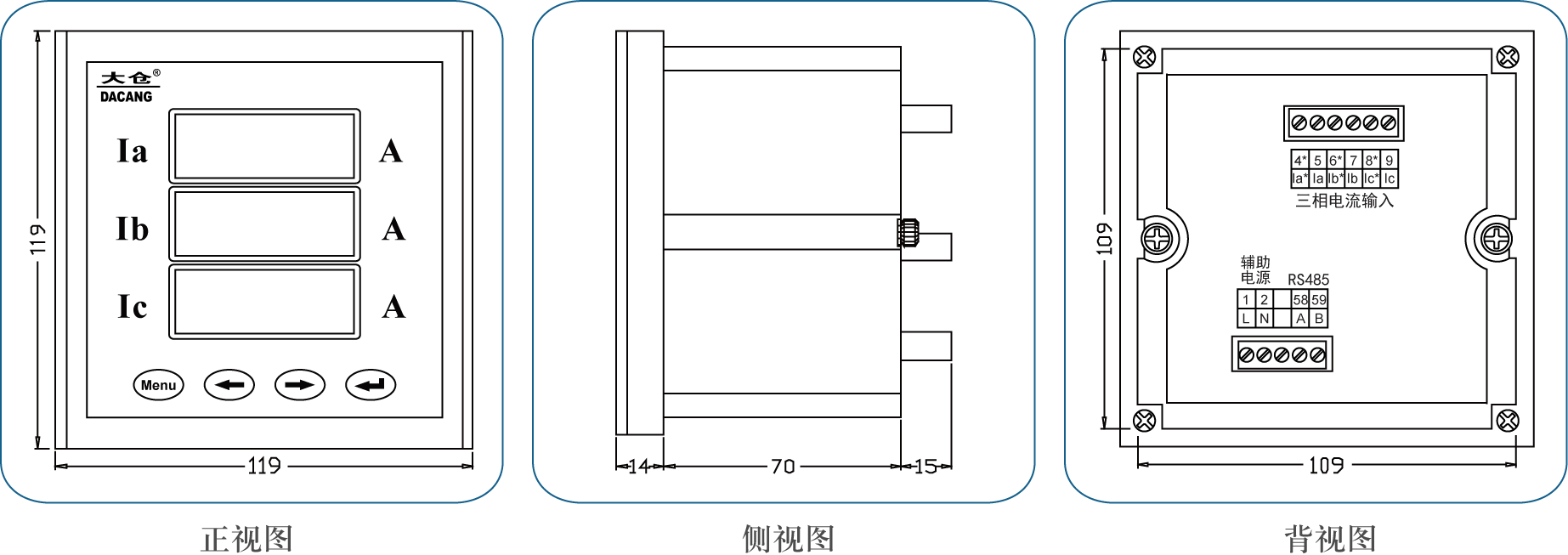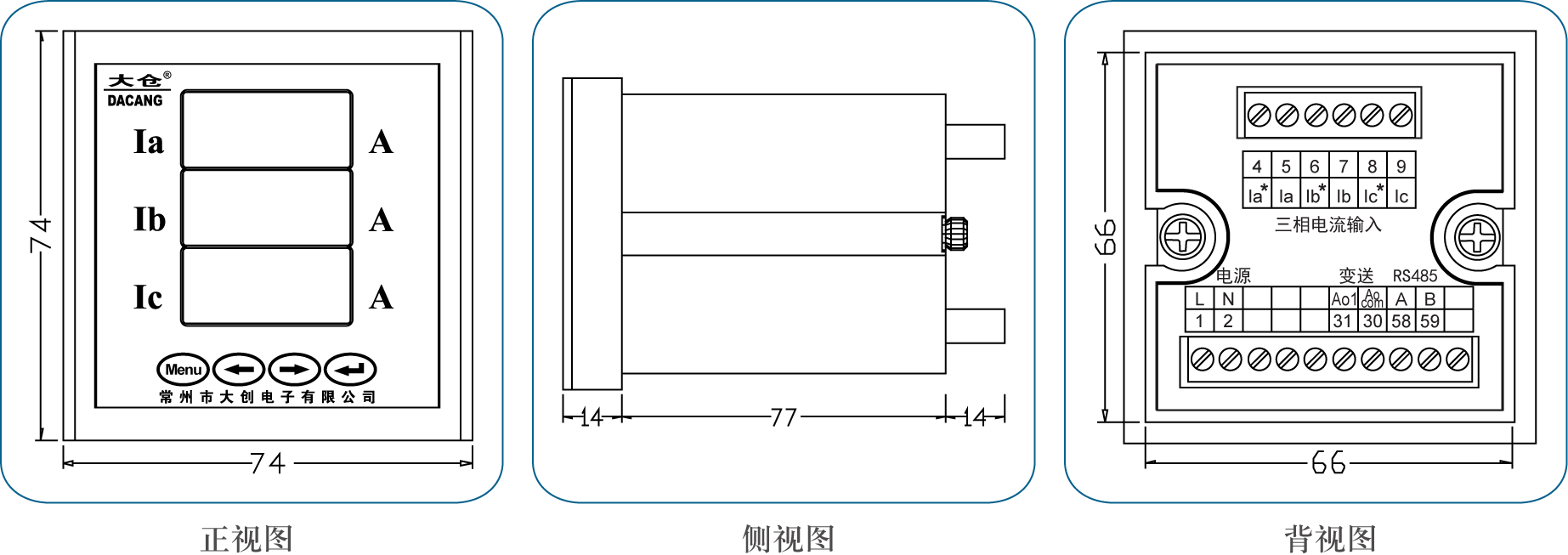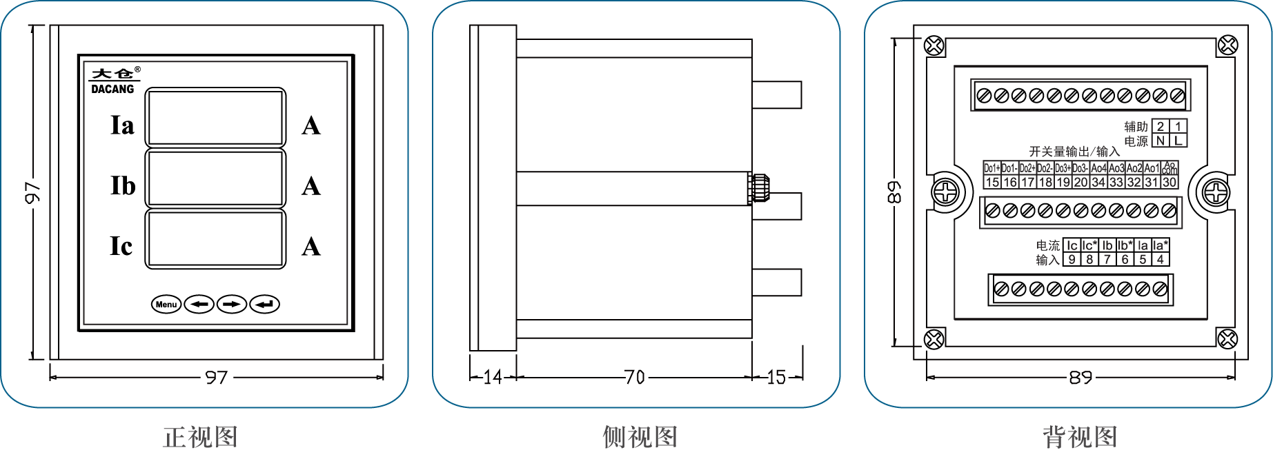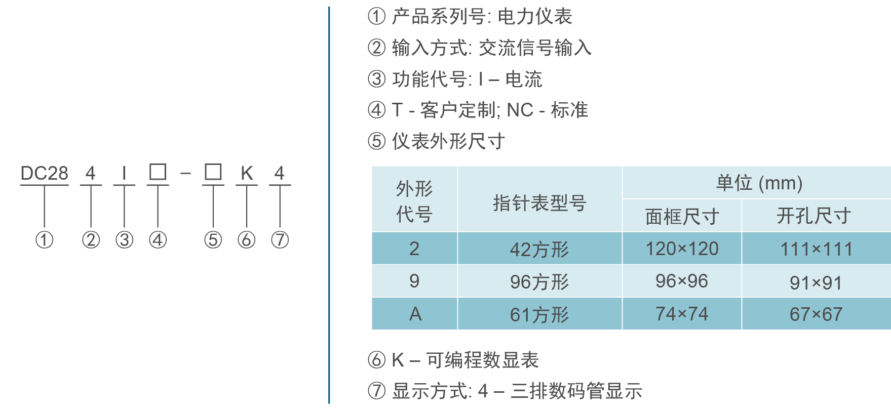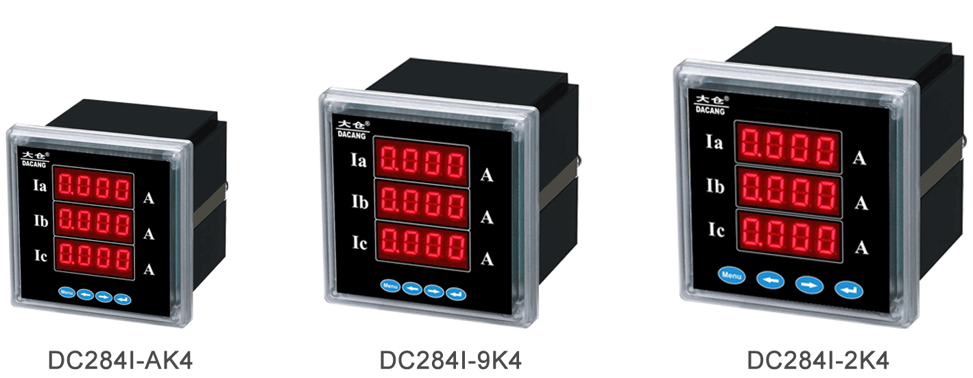 三相数显电流表主要用于配电系统的连续监视、测量电网中的三相电流参数。 开关量输入用于监视开关状态,继电器输出用于报警或分合闸控制,模拟量输出用于DCS系统或工业监控设备,RS485通讯口(Modbus-RTU通讯协议)用于数据的输出。 三相数显电流表按其功能,可分为四类: ◇ X系列(普通数显电测型) ◇ D系列(数显变送型)选配模拟量输出 ◇ K系列(可编程设置型)可选配RS485通讯 ◇ S系列(报警测控型)选配开关量输入、继电器输出 三相数显电流表可全面替代常规单相、三相指针表,可用于智能配电系统或企业过程自动化系统的数据采集单元,特别是在对电力品质、电力安全有要求的场合以及就地显示的场合。 主要应用领域有: ◇ 高、低压配电系统 ◇ 智能开关柜 ◇ 工厂自动化系统 ◇ 工业机器设备 ◇ 智能型箱变及楼宇 ◇ 商业、工业和电力系统 2. 产品图片