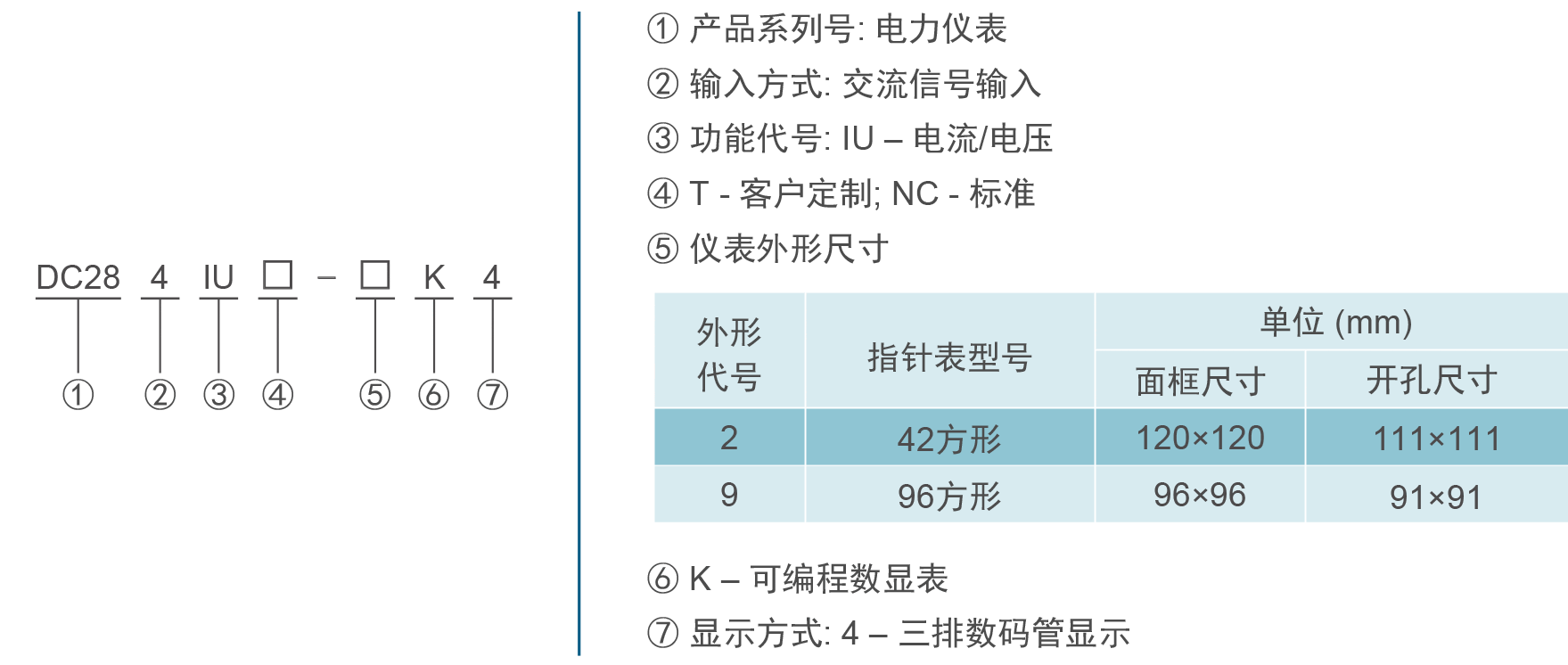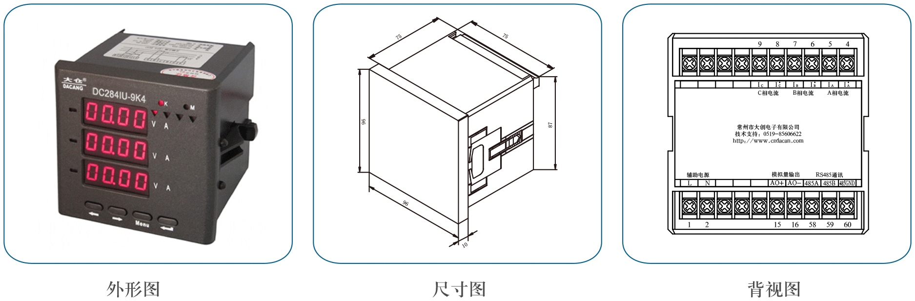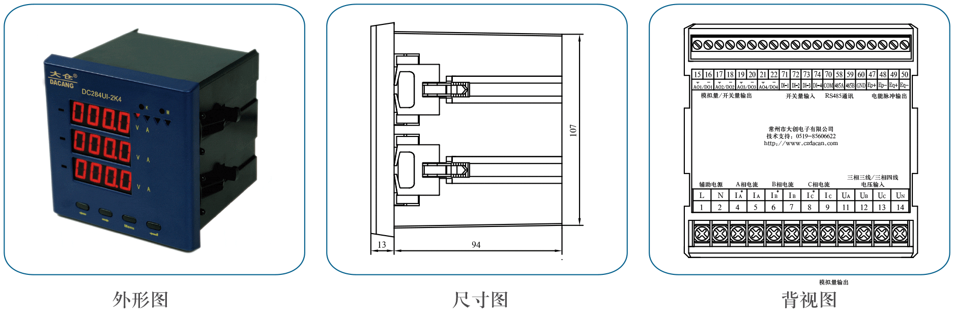 可编程智能数显仪表主要用于配电系统的连续监视、测量电网中的各种电参量,如电流、电压等。 开关量输入用于监视开关状态,继电器输出用于报警或分合闸控制,模拟量输出用于DCS系统或工业监控设备,RS485通讯口(Modbus-RTU通讯协议)用于数据的输出。 可编程智能数显仪表按其功能,可分为四类: ◇ X系列(普通数显电测型) ◇ D系列(数显变送型)选配模拟量输出 ◇ K系列(可编程设置型)可选配RS485通讯 ◇ S系列(报警测控型)选配开关量输入、继电器输出 可编程智能数显仪表可全面替代常规单相、三相指针表,可用于智能配电系统或企业过程自动化系统的数据采集单元,特别是在对电力品质、电力安全有要求的场合以及就地显示的场合。 主要应用领域有: ◇ 高、低压配电系统 ◇ 智能开关柜 ◇ 工厂自动化系统 ◇ 工业机器设备 ◇ 智能型箱变及楼宇 ◇ 商业、工业和电力系统 2. 产品图片